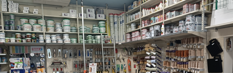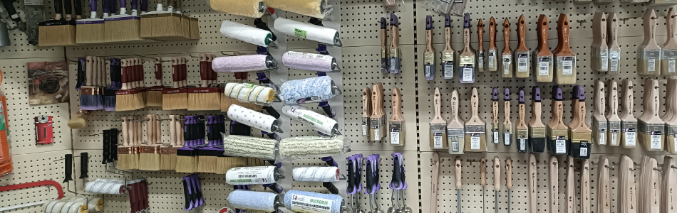 Pennelli, rulli, nastri adesivi e tutto il necessario per una pittura professionale e di qualità.